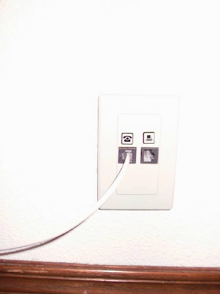 電話の横にデータポートが付いていてモジュラケーブル刺しました。