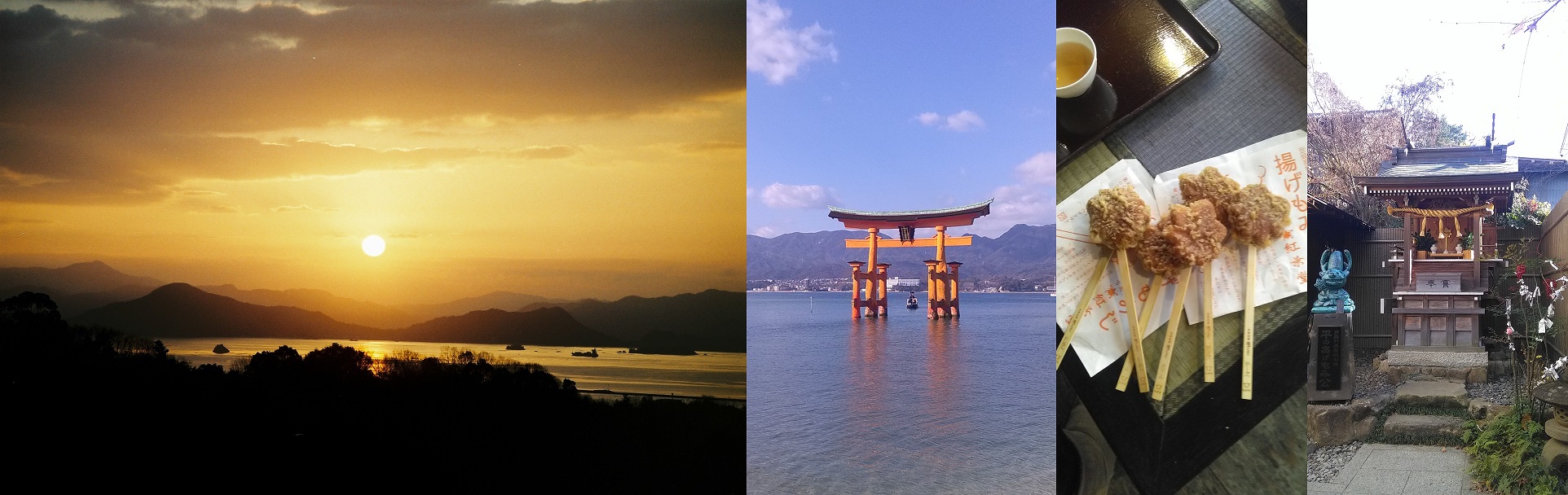 2018/1/2撮影 宮島SAから見た日の出→宮島(海に浮かぶ大鳥居/美味しい揚げもみじ/揚げもみじ神社)。