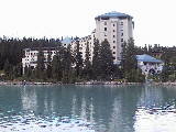 左は「シャトーレイクルイーズホテル」を湖側から見た姿です。