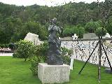 手前に唄う姿の銅像が有り彼女の唄が流れています。奥には出生と履歴を示す